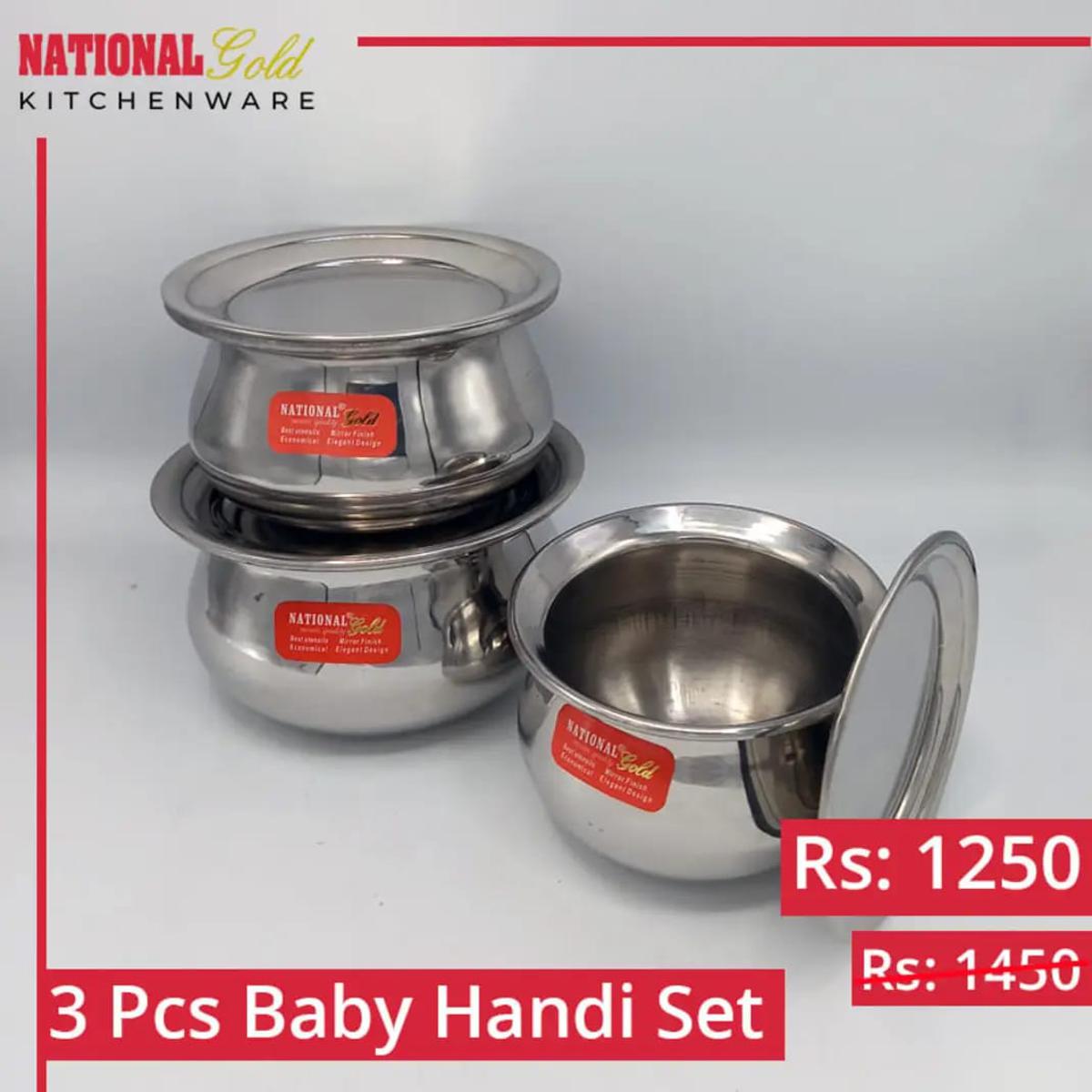 Stainless Steel 6 Pcs Baby Handi Steel Set 3 Patil And 3 Lid(Coffee,Milk & Tea)