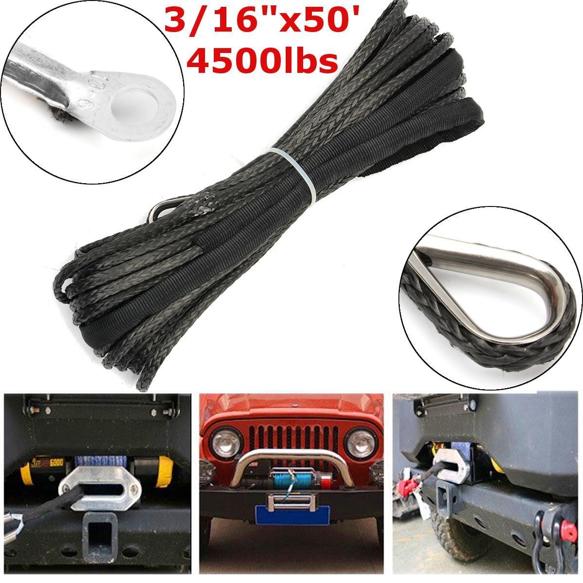 4.8mm x 15m 4500lbs Synthetic Winch Rope Cable Thimble ATV Winch Kit Line -