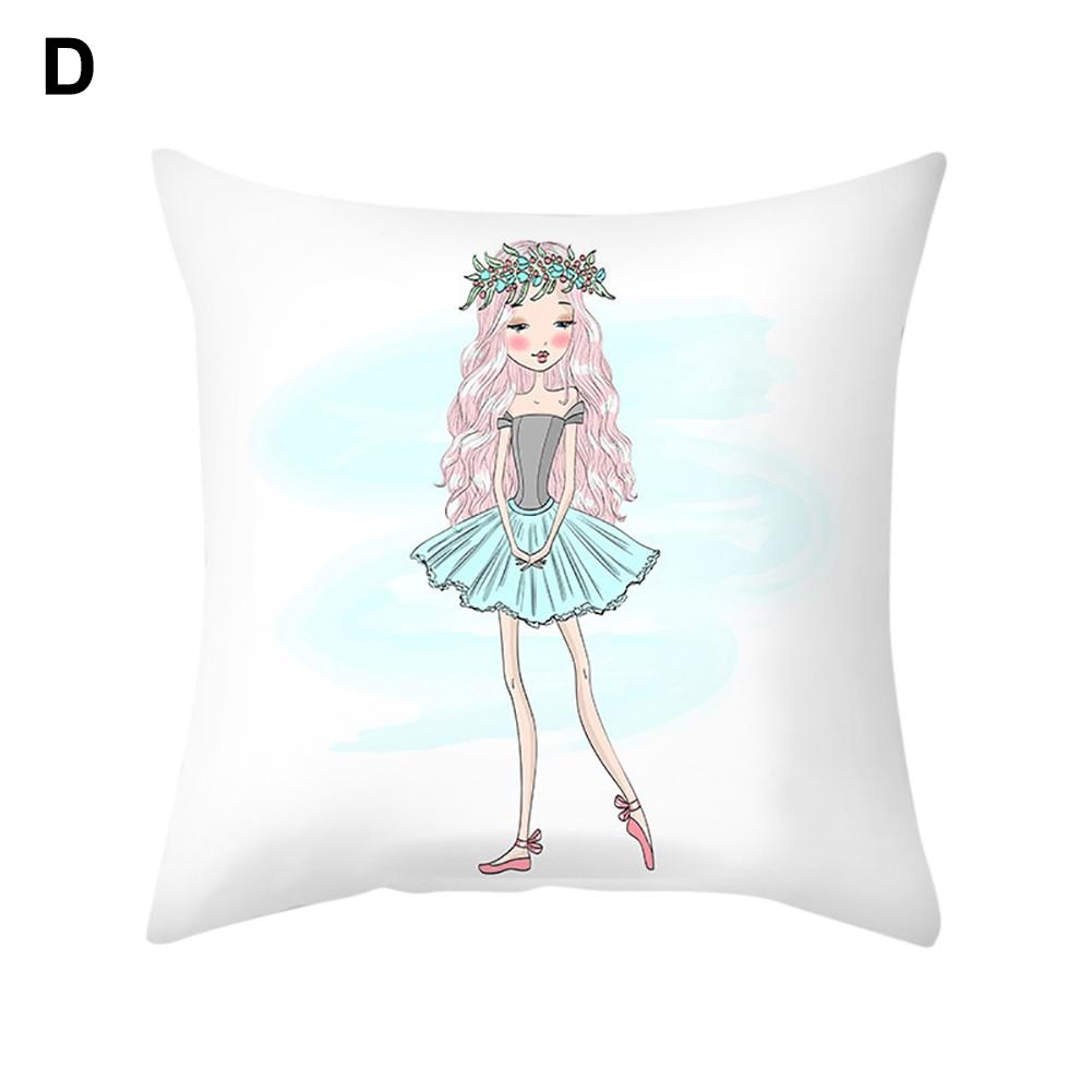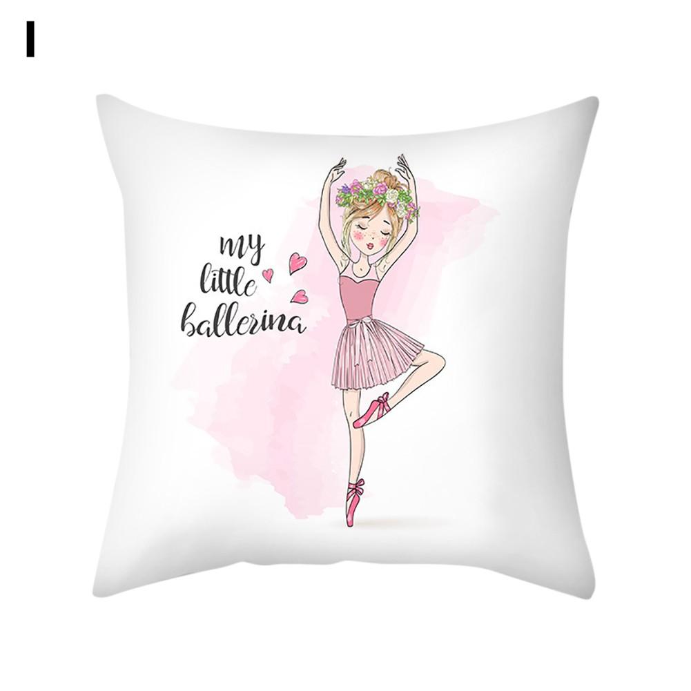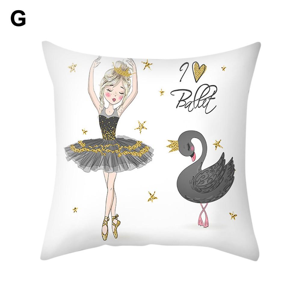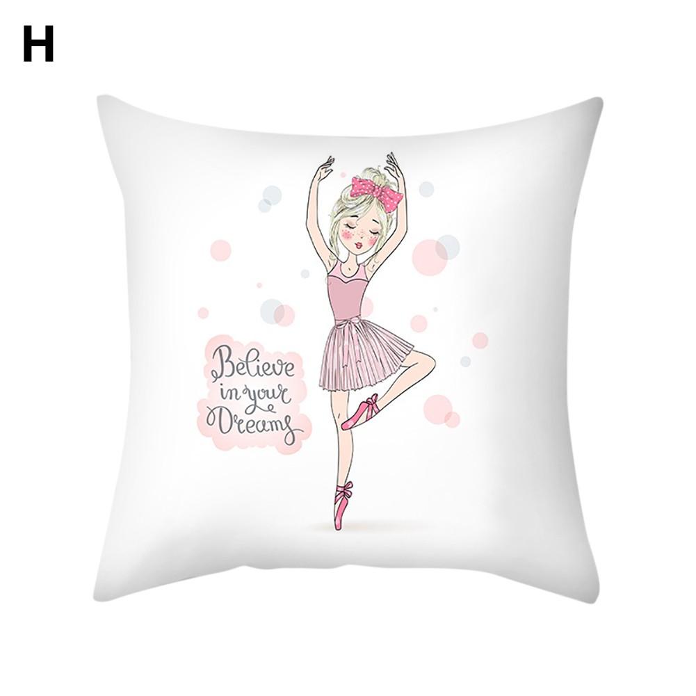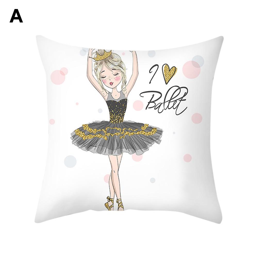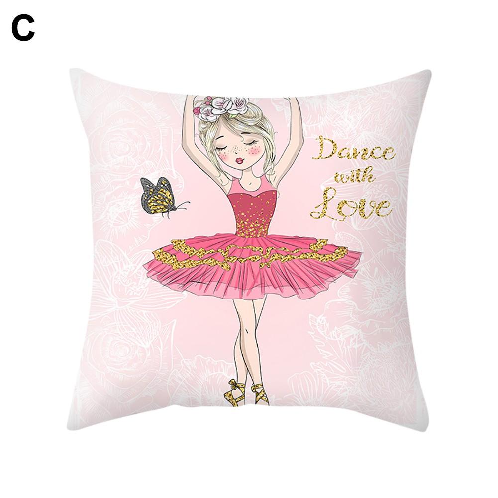 Ballet dancing girl pattern cushion cover, with bright color and lovely design.