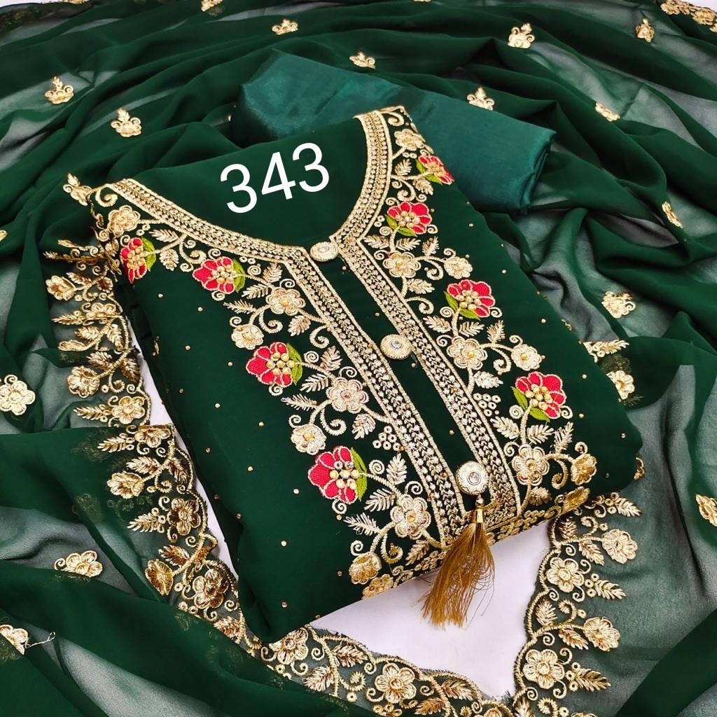 Fashionable Georgette/Jorjet Shalwar Kameez Three Piece Party Dress {4 Piece}