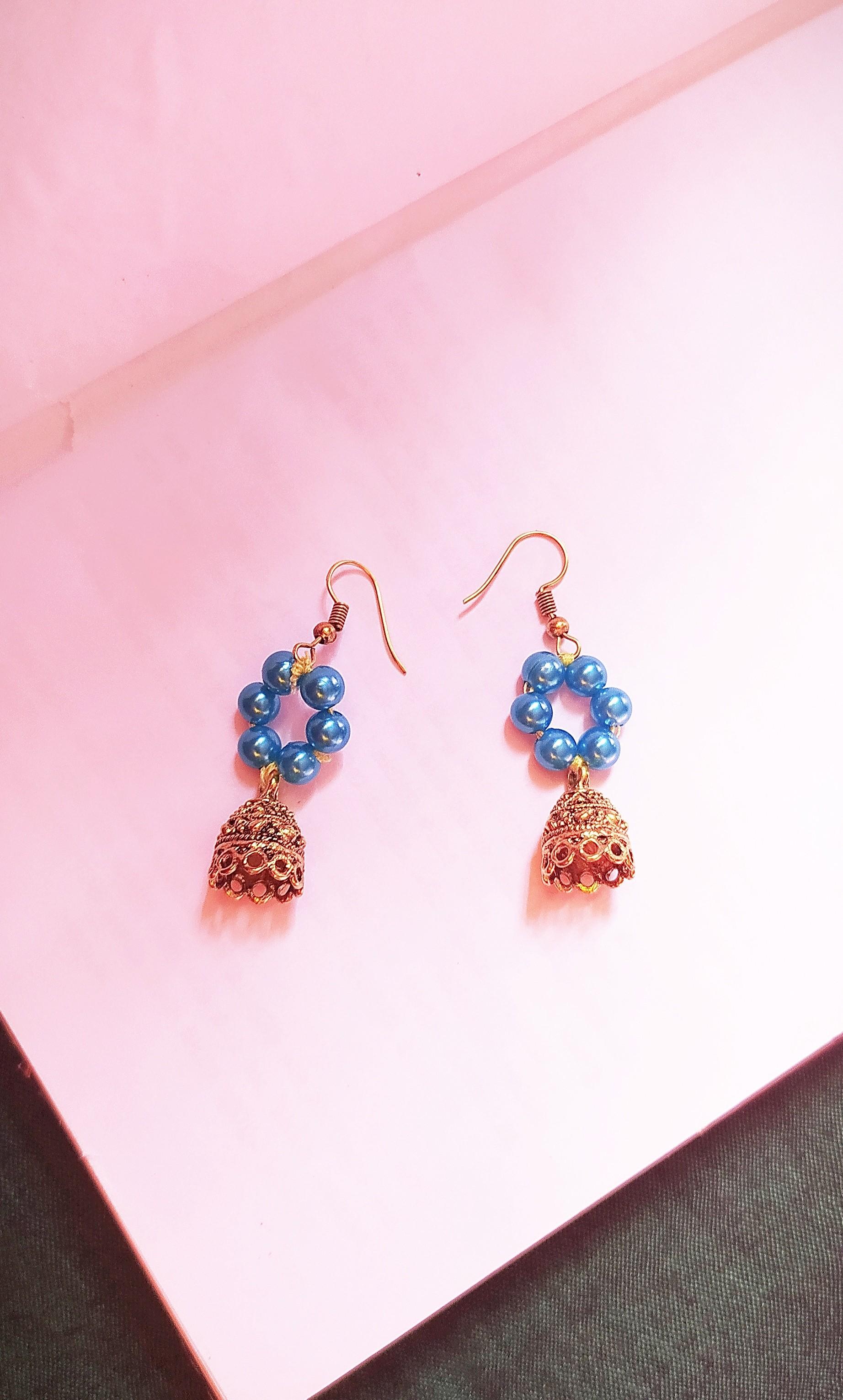 THIS EARRINGS ARE TOTALLY CUSTOMIZED AND HAND MADE PRODUCT.MADE BY BLUE PEARL AND METAL JHUMKA.