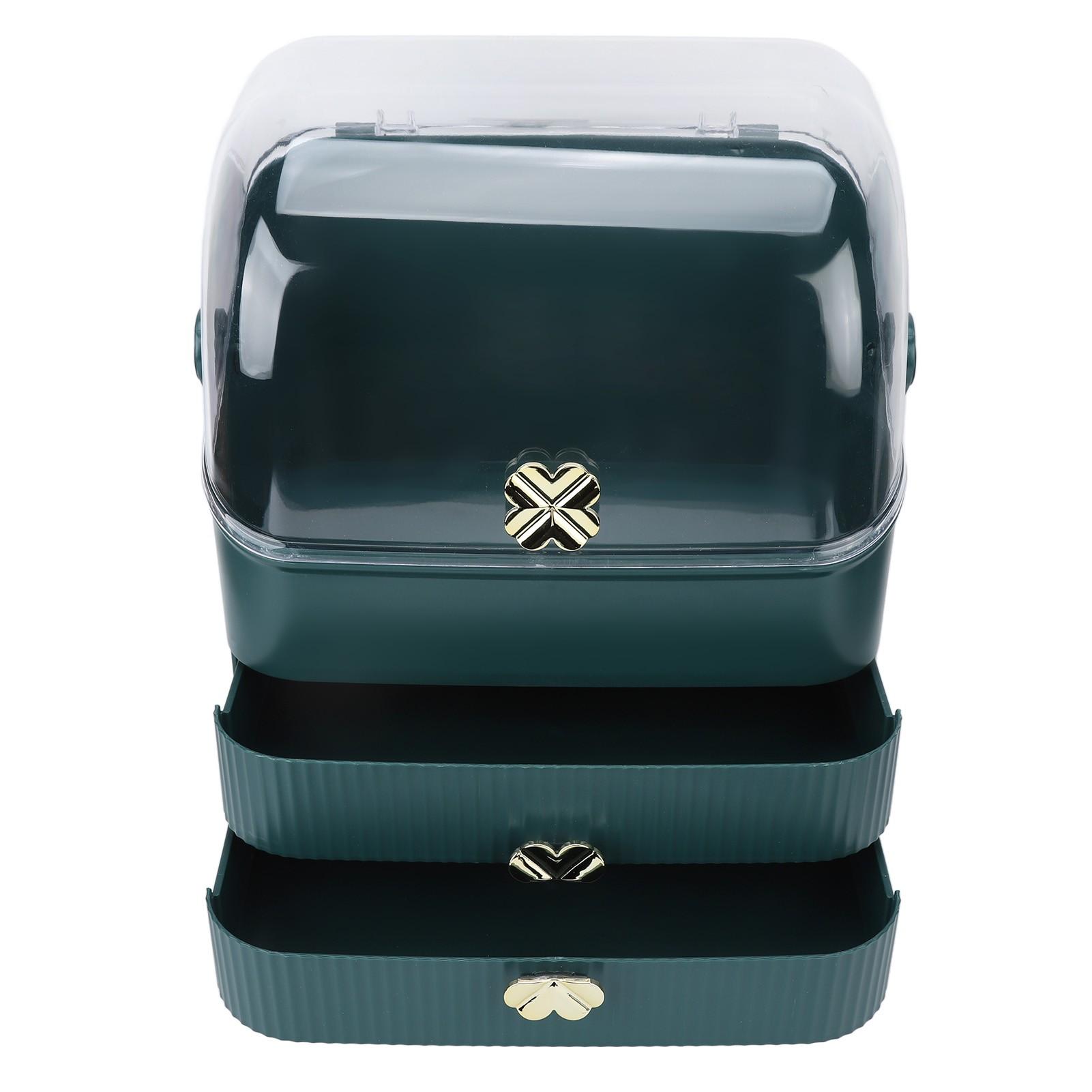 3. Vertical cover: The portable storage box has a large flip cover, which is hands free, easy to take cosmetics, with high transparent dust cover