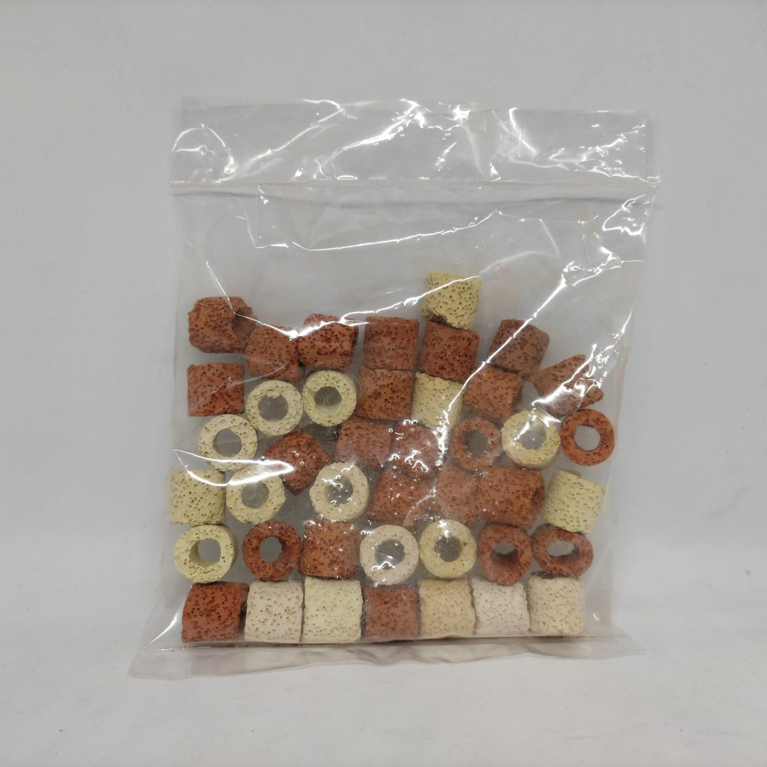 • Mix Ceramic Ring (White & Red) For Aquarium Fish Tank & Other Fish Perming - 100gm