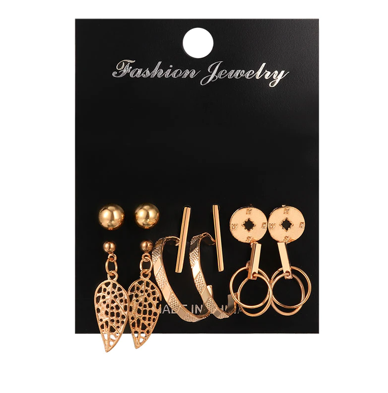 New Trendy 6 Pairs = 12 Pcs Stud Earrings Set for Women New Collection - Bohemian Fashion Jewelry 2022 Geometric Crystal Heart Stud Earrings for Girls/ Earring for Women