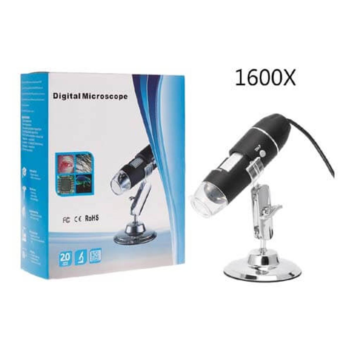 • USB Digital Microscope 1600X Zoom with LED Light and Stand